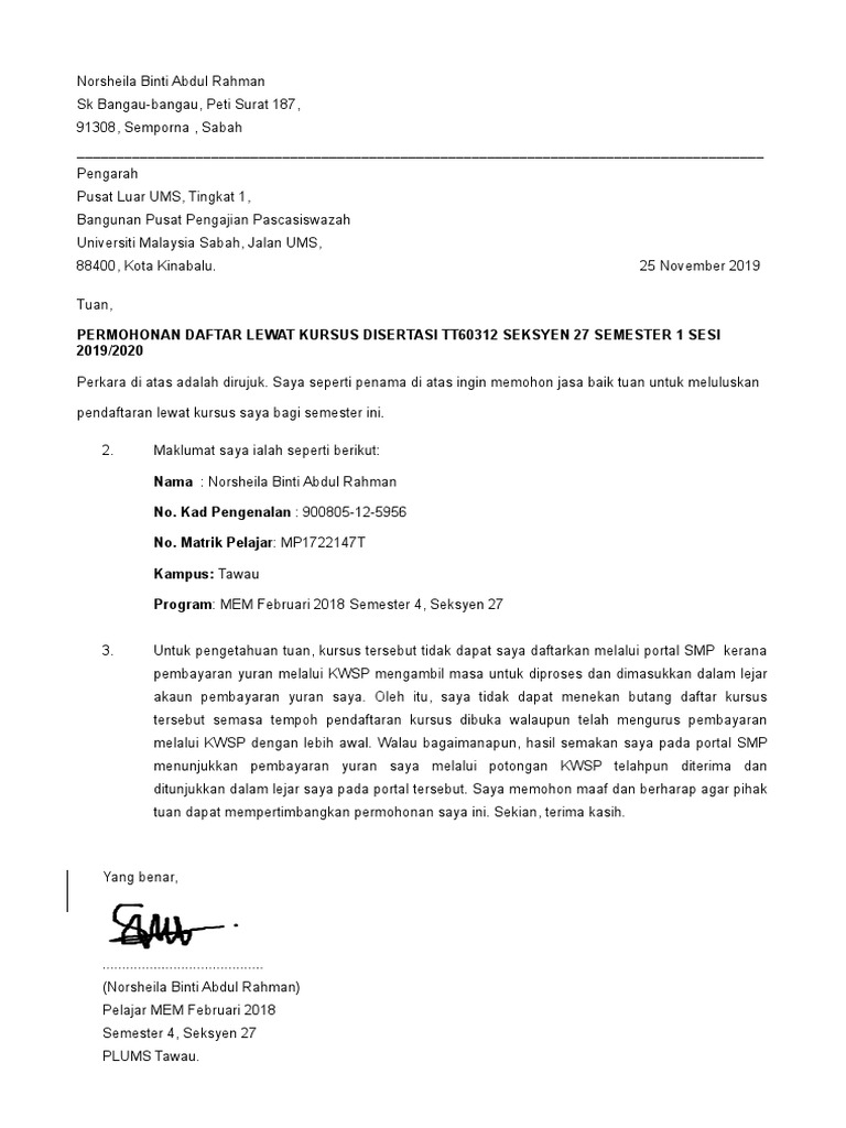 Surat Permohonan Lewat Daftar Kursus Pdf